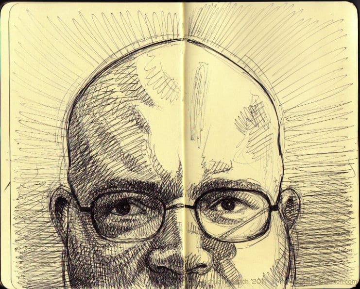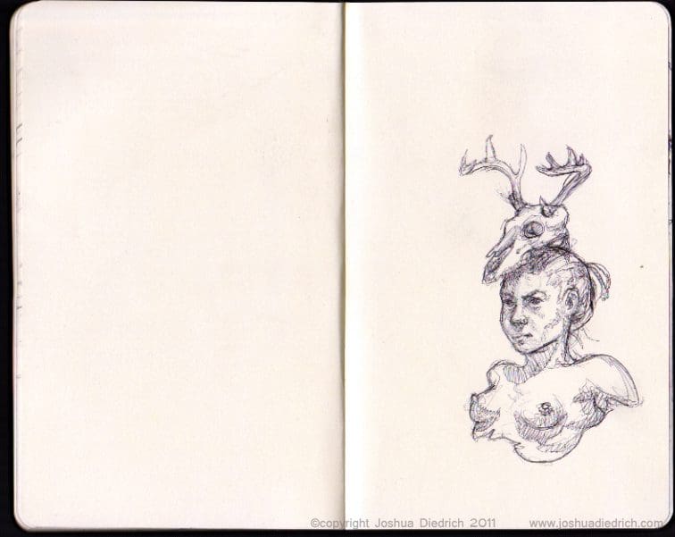 Moleskine 2010a Moleskine sketchbook Studio drawings, drawings in bars, drawings from circus practice, all in Parker ballpoint pen. Pocket contains a postcard for Paw Paw Elvis. 2010