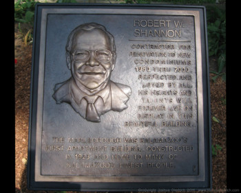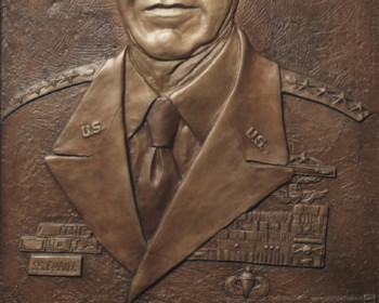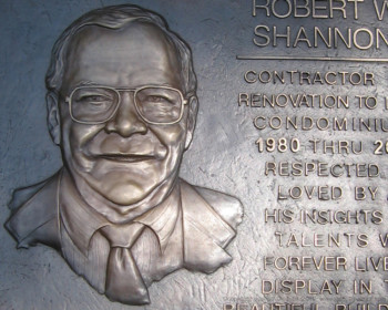 The larger bronze bas reliefs here pay tribute to Robert Shannon, a carpenter who renovated the old Marlborough hotel into a vital community of unique residences in Kalamazoo Michigan, commissioned by his friend and the building’s owner, Ted Little. General Joe Shoemaker, the only Army 4-star general Michigan has produced, and Jack Kelly, who created the town and lake at Lake Doster Michigan, both commissioned by their families as a memorials to their lives.