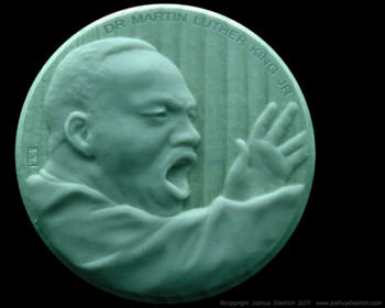 Bas Relief is the difficult “flattened” sculpting technique used on coins, as with the Dr. Martin Luther King jr medal depicted here, and the larger portrait plaques.